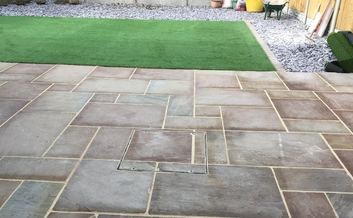 Laying an artificial lawn offers several benefits: it requires minimal maintenance, stays green all year-round, reduces water usage, is durable against heavy foot traffic, and eliminates the need for pesticides or fertilizers, making it environmentally friendly. An artificial lawn provides a consistently neat appearance and can be cost-effective in the long run.